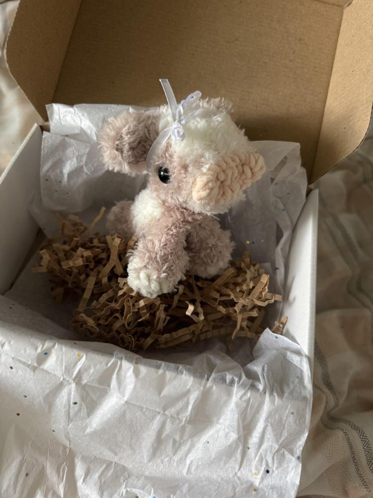 Самый милый подарок для ребёнка и взрослого, такая игрушка никого не оставит равнодушным. Рекомендуется детям от 3 лет. Очень приятная на ощупь, может быть как и игрушкой для ребенка, так и прекрасным дополнением в интерьер. Все детали ввязаны, поэтому игрушка не развалится, даже при самых активных играх. В стоимость входит подарочная упаковка