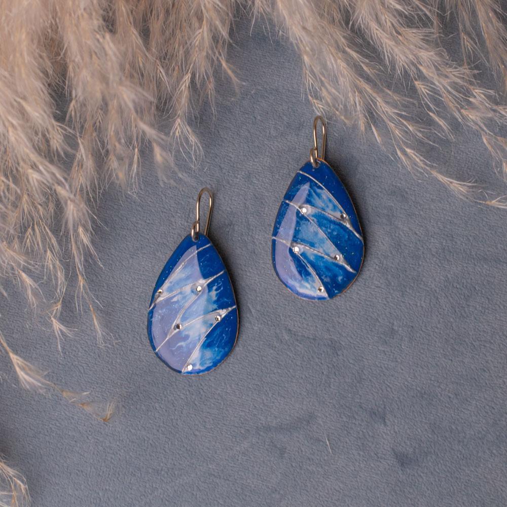 Серьги ручной работы. Серьги выполнены в технике роспись холодной эмалью.
