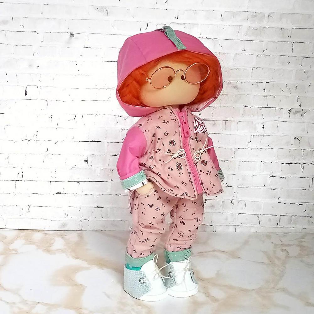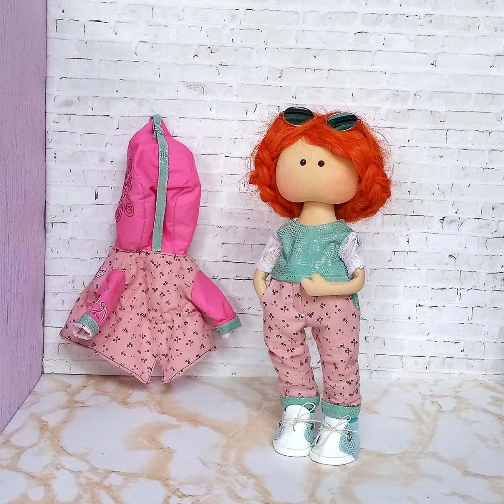 Очаровательная кукла с рыжими волосами одета в джинсовый костюм: брюки и парку. Созданная в единственном экземпляре, она станет замечательным подарком на любой праздник.