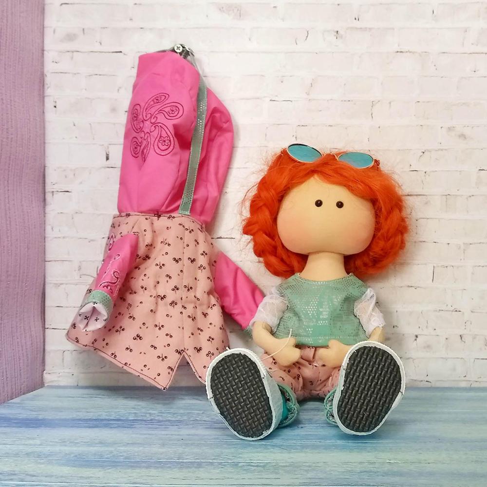 Текстильная кукла ручной работы с поворотной головой, полноценной прической с ярко-рыжими волосами. Интерьерная кукла ручной работы с рыжими волосами-подарок в единственном экземпляре.