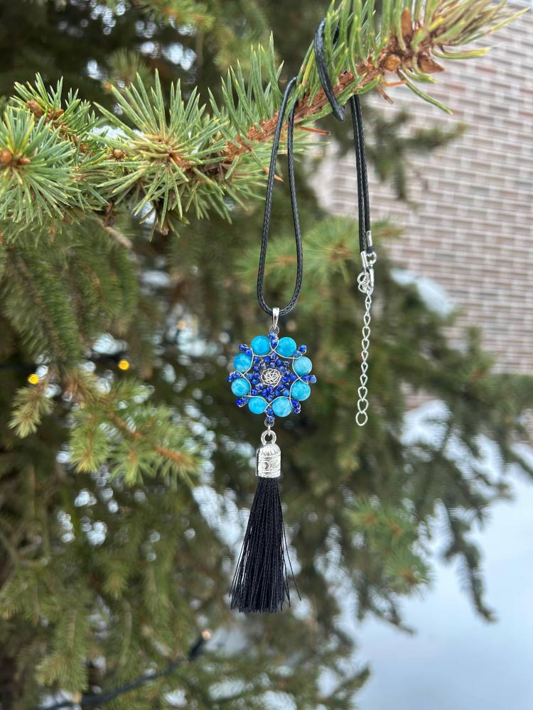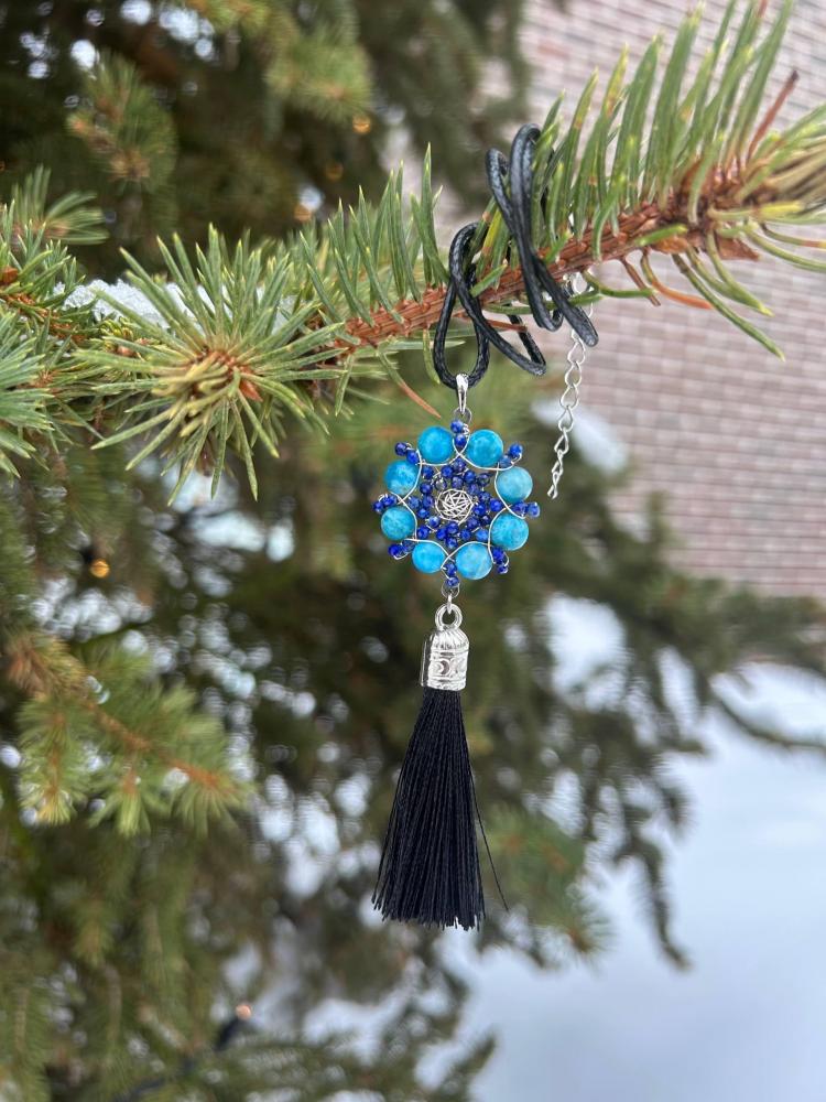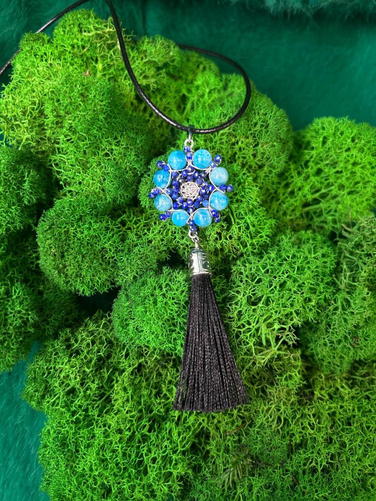 Комбинация лазурита и апатита в украшении-мандале считается одной из лучших для улучшения коммуникации, так как оба камня резонируют с горловой чакрой (Вишуддхой), отвечающей за самовыражение и общение.