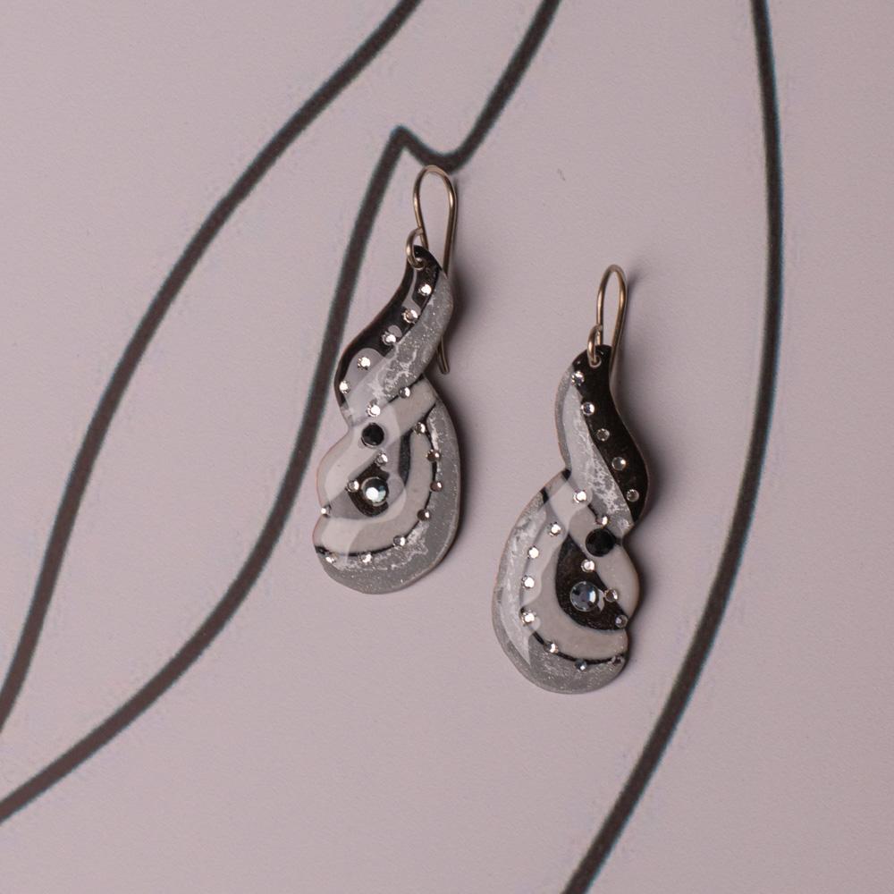 Серьги ручной работы. Серьги выполнены в технике роспись холодной эмалью.